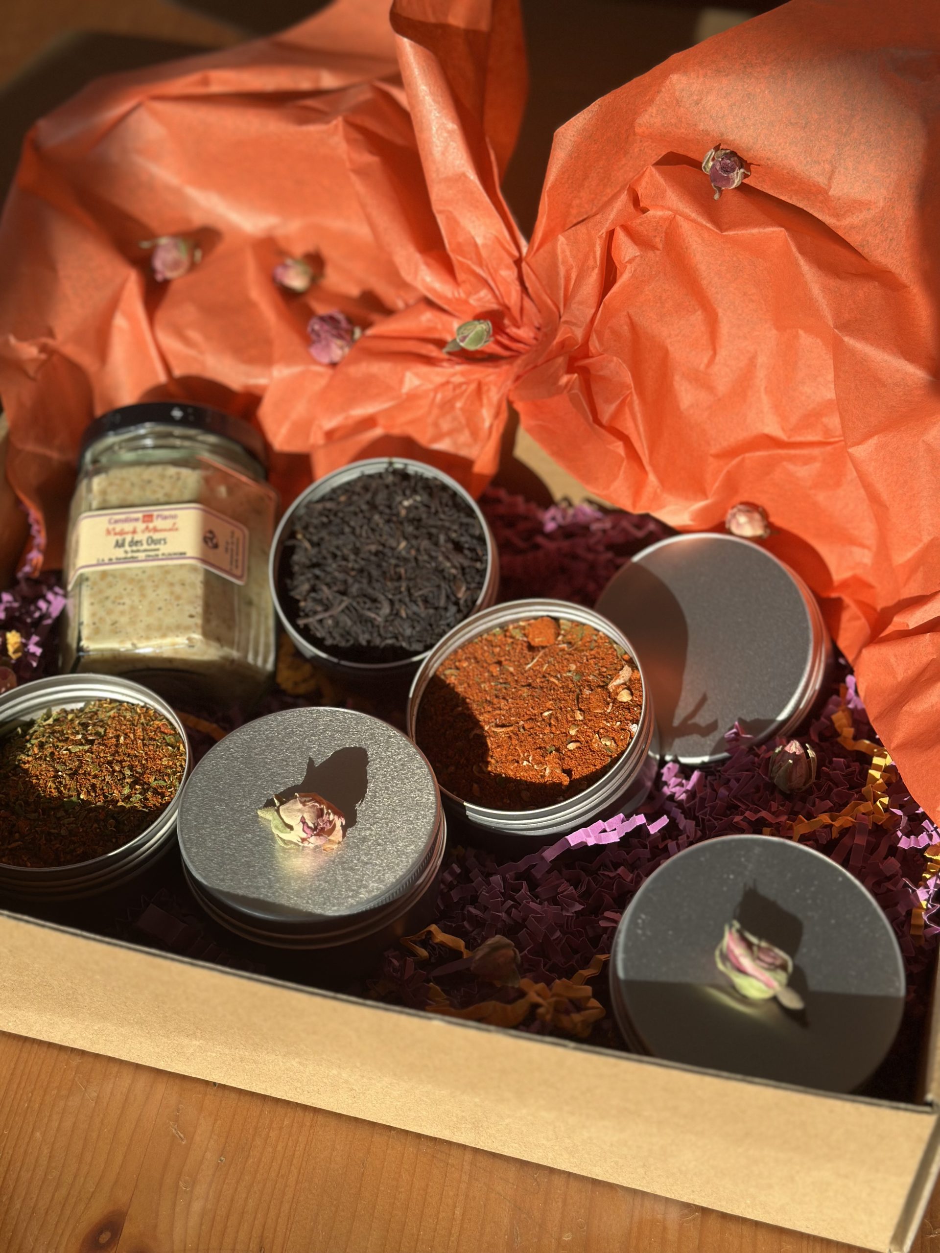 Des Épices, Poivres & Thés en Boite Alu, une Création Caroline au Piano! C’es ainsi le Coffret parfait pour mettre du soleil et de la fraicheur dans votre cuisine!