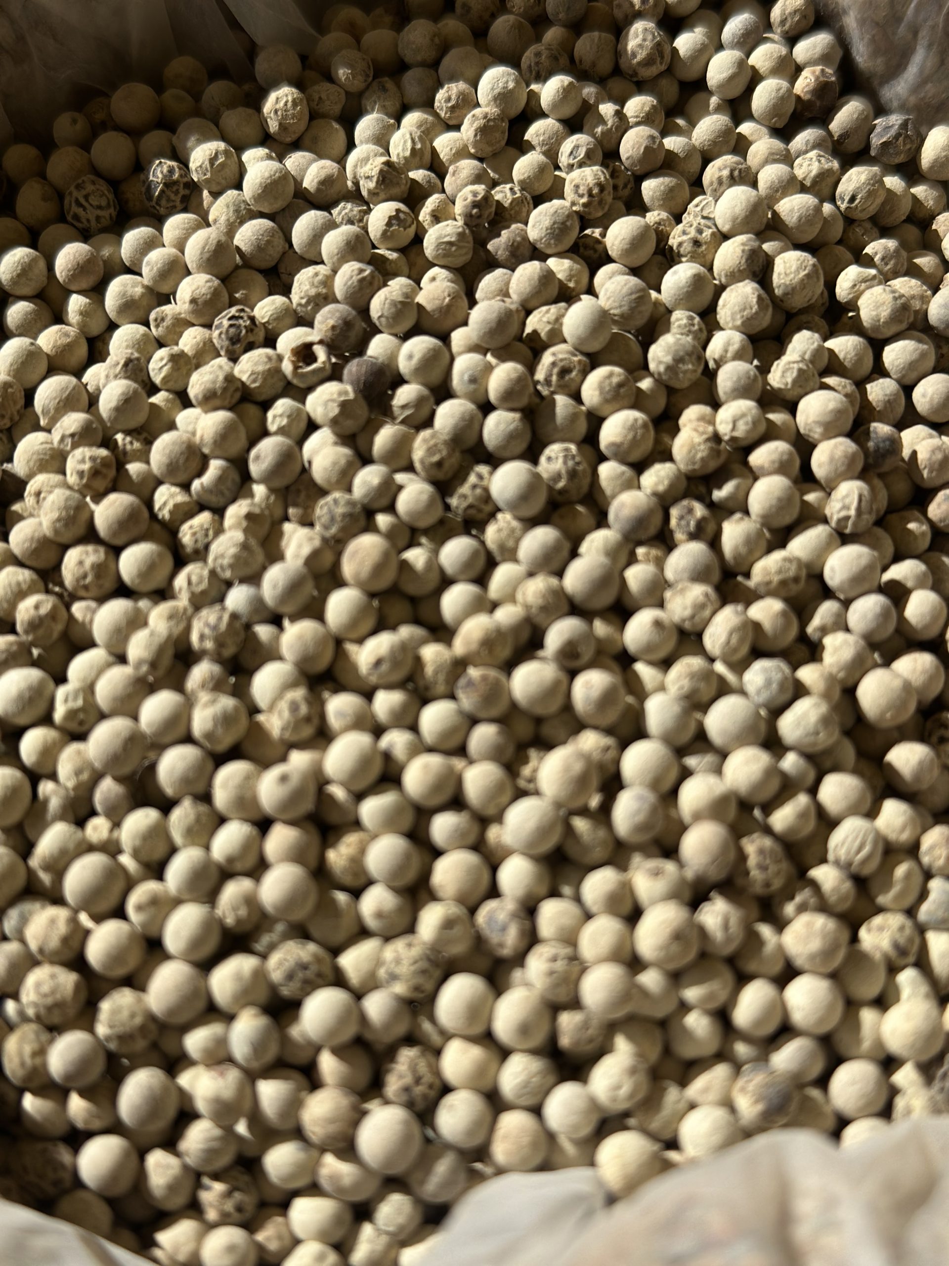 Tout d’abord cueillis à maturité de façon artisanale, les grains noirs trempent dans de l’eau. Puis on les frotte afin qu’ils perdent leurs enveloppes,le péricarpe. Le Poivre devient alors blanc et lisse.